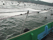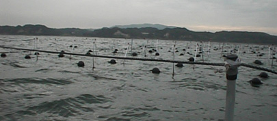 平成9年9月の下旬,天羽漁協で海苔網を海に広げる作業が始まりました。これから10月中旬までが海苔の種から芽を出させる段階。これから春までの使う全部の海苔網に芽を出させて,ふたたび冷凍庫にしまっていきます。