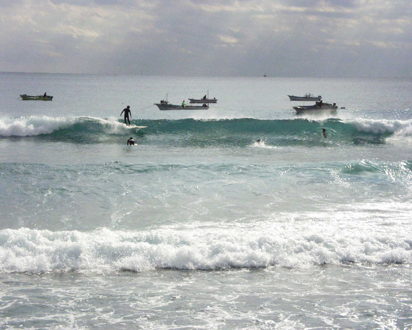 が解禁、鴨川漁港(鴨川市漁協)と浜荻漁港(天津小湊漁協)から船外機船で出漁します。漁場はサーフィンの名ポイント前原海岸の岸近く。サーファーが波を待っているすぐ横での操業です。